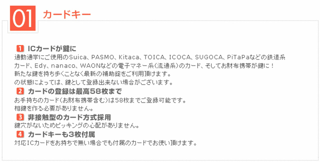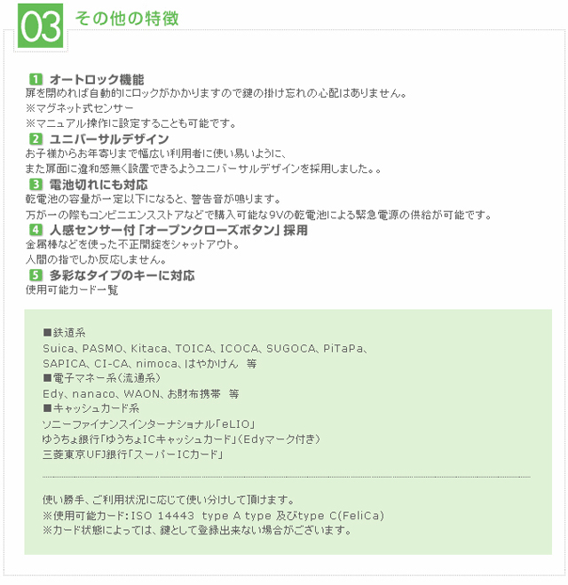 子どもがよく鍵をなくすので鍵を持ち歩かないでいいような鍵を探していました。このアンシモンカードはSuicaで開錠が出来るので、子どもが学校に持って行っているSuicaに登録しておくと便利なのでとても助かっています。お陰で鍵を失くして交換するというこももう無くなりました。
